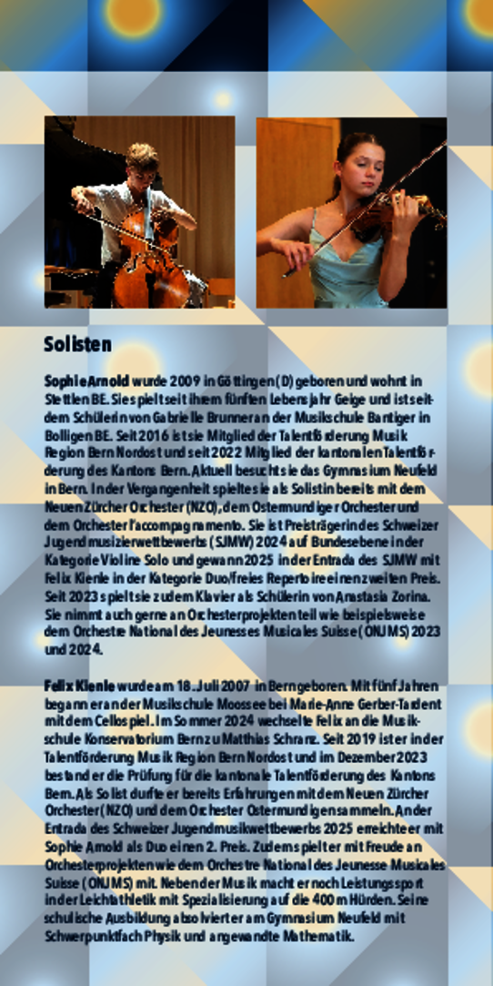 Solisten: Paul Moser, Violine; Catherine Loeffel, Violoncello; Martin Stöckli, Oboe; Lorenz Martin, Fagott